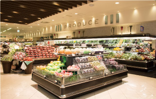 クリーム系の色を基調にしたカラーコントロールや、照明のコントラストによって、都市型スーパーマーケット「Odakyu OX」らしさを演出し、目にも心にも優しい快適な売場環境を実現します。